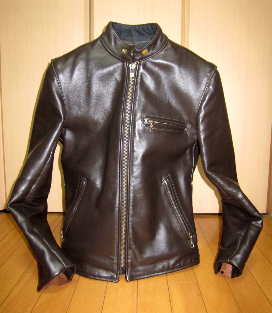 レザーシングルライダース 価格 ¥40,000ー 程度:新品同様 サイズ:34 色:ダークブラウン 牛革製 人気のバンソンはタイプ.B シングルライダースです 通称オクタゴンと呼ばれるブラウンレザーを採用したショップ別注モデル。 ハードな印象のブラックとはまた一味違う人気モデルです オクタゴンレザーは光沢が強く艶がありとても綺麗な状態です 使用感はほとんど感じず、まだレザーに硬さが残っています。これから着込んで体に馴染ませてください。 袖先に少々色落ちがありますが、かなり状態の良い一枚です オクタゴンにはライトブラウンとダークブラウンがありますが、このダークブラウンは本当に綺麗でお勧めです! ファスナーはフロント、袖ともにバンソンオリジナル、切れなど無くスムーズに動作します 取り外し可能なフリーズ素材のインナーベスト(ボア)が付きます。これがあると寒い冬にとても重宝します 肩幅:45cm・胸幅:49cm・裾幅:43cm・袖丈:62cm 着丈前:54cm・後:62cm(共に襟下〜)※全て直線距離です 175cm,60kgの私がふ厚いフリースー枚着用でジャストサイズで着ることが出来ます。他のTYPE.B 34より少し大きめです 160〜175cm位の細め〜普通体形の方にお勧めします |