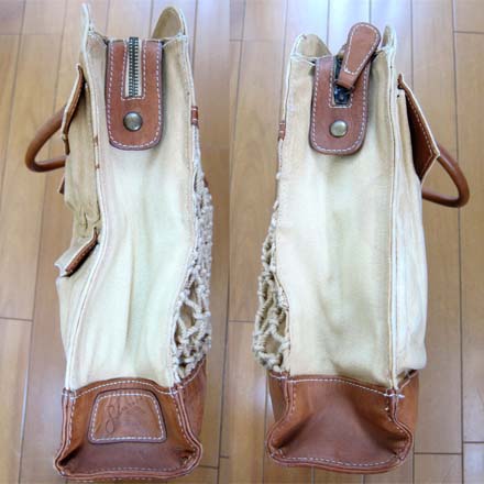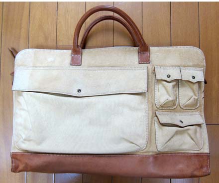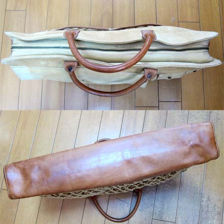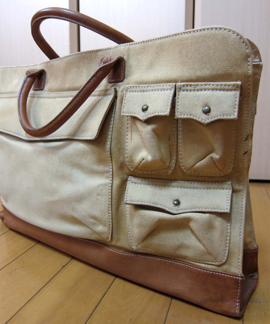 クラシカル フィッシングバッグ 価格 ¥6,800ー 程度:8/10 色:ベージュ&ブラウン フローブの厚手のキャンパス地とレザーを使用したクラシカルなブリーフケース。 フロントに大小4つのポケットとバックサイドにメッシュのポケットをアクセントにしたフィッシングスタイルのバッグです 内側にもファスナー付きのポケットがあります。 Wファスナーなので使い買っても上々です。 使用回数は数回で、大きなダメージはなく状態はいいと思います。 経年劣化でキャンパス時に多少の変色がありますが、よりビンテージ感が増していい感じになっています。 小旅行に如何ですか!! サイズ 横:450mm 縦:290mm 幅:80mm |